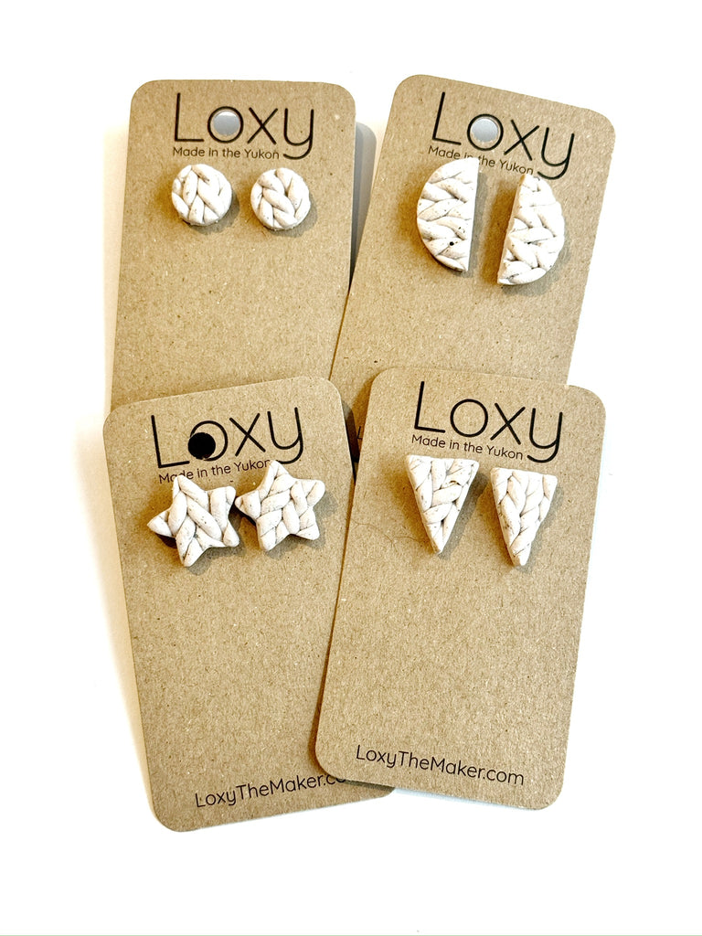 These are handmade in polymer clay. They are super lightweight and made in the Yukon. Small imperfections are just part of the handmade process.